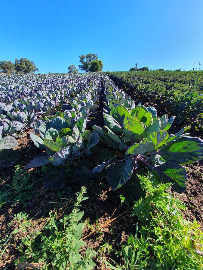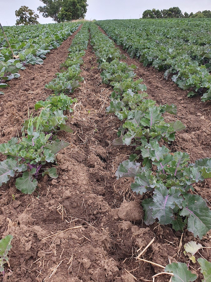 This paddock is part of the original Eastbrook Vegetable Farm just outside of the town of Mount Barker. The field gets its name from the large gumtrees which have grown on its western edge. This trees along with the slopes make it feel like you are in the Flinders Ranges. The upper northern portions of this field were formed from the excavation of the Southeastern Freeway which was built in the early 70’s. As a result, the soil is quite heavy and has some rock scattered throughout the upper sections. However, in other areas of the field the soil is light and easily prone to erosion due to a steep slope on the southern side.